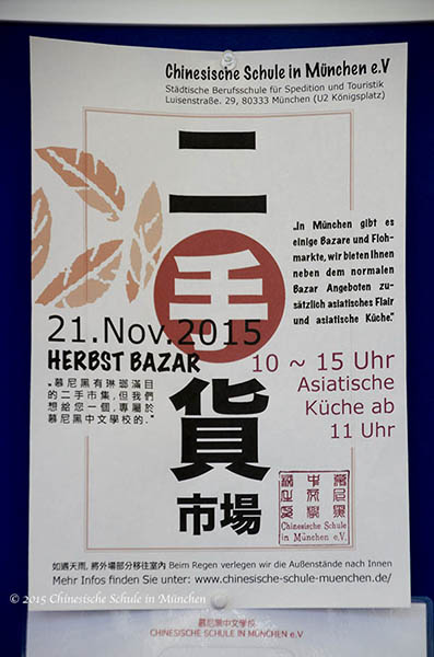verfasst von Franz Jun Wei BlattenbergerAm 21. November 2015 fand der jährliche Flohmarkt der Chinesischen Schule München statt. Jeder, der wollte, durfte dabei seine eigenen mitgebrachten „Waren“ verkaufen.