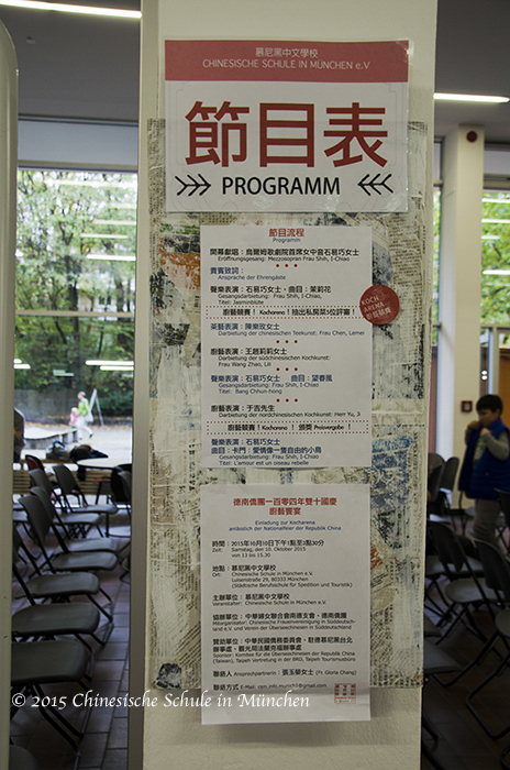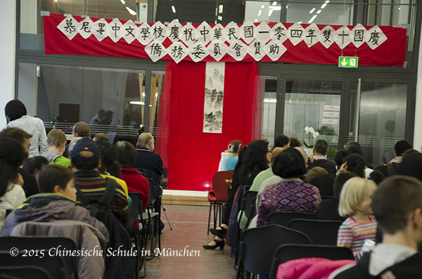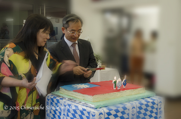 verfasst von Jennifer Chen-MetzgerAm Samstag, dem 10.10.15 fing der Elternbeirat mit vielen Eltern als ehrenamtlichen Helfern schon in der Frühe mit der Vorbereitung auf die Feier an. Bevor das Programm richtig losging, überraschte der Elternbeirat mit einer mit der Nationalflagge der Republik China dekorierten großen Torte. Die Anwesenden sangen fröhlich das Geburtstagslied auf Chinesisch, bevor die drei Kerzen ausgeblasen wurden. Denn die Chinesische Schule in München feierte heute mit vielen Überseechinesen den 104ten Geburtstag der Republik China (Taiwan).