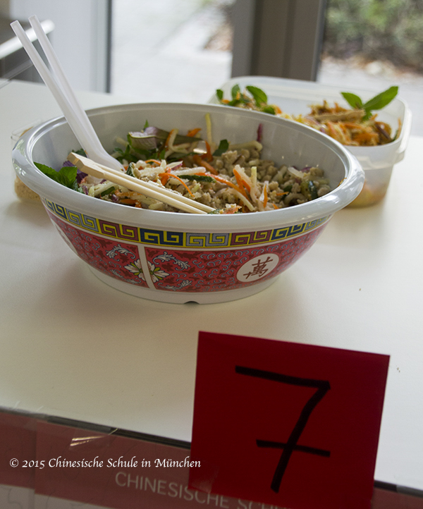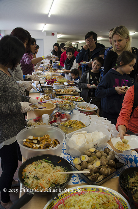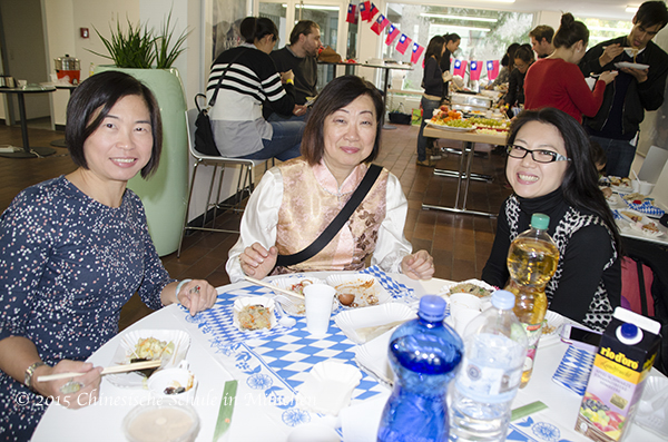 Zum Abschluss des Programms wurde das Ergebnis des Kochwettbewerbs bekannt gegeben. Die Namen der Gewinner waren Frau Xiangzhou Zhu (Gold), Frau Han Cai (Silber) und Frau Jennifer Chen-Metzger (Bronze). Die drei ausgewählten Kochmeisterinnen bekamen einen Gutschein als Preis. Schließlich wurde das leckere Festmahl eröffnet, welches nicht nur den Gästen das Wasser im Mund zusammenlaufen ließ, sondern auch eine unvergessliche, schöne Erinnerung für alle war.