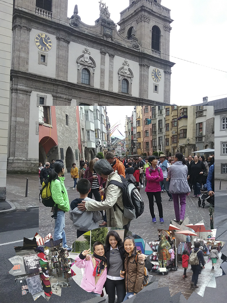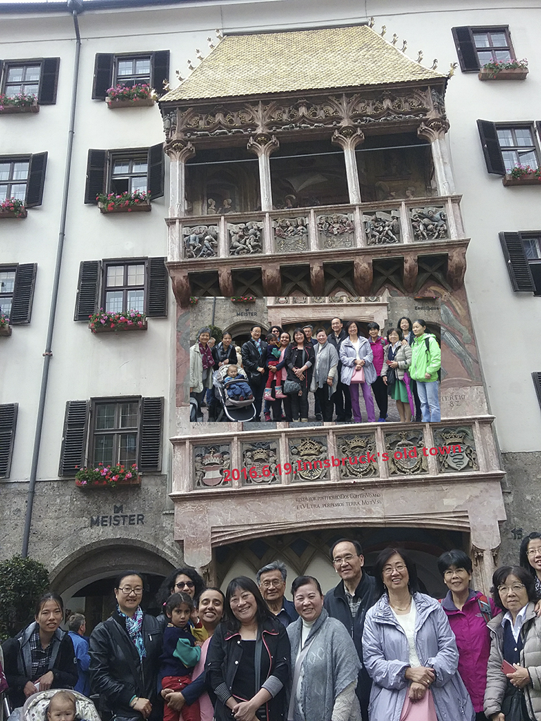 外頭的花園融合自然與現代建築藝術,我們被一群吃草的綿羊給吸引,不遠處卻是一個特別的水池,人們可以透過通道進入水池中間,讓外面的人以為人被水淹沒的假象,十分有趣.但時間不等人,我們也再次匆匆地趕往Innsbruck,可惜只有短短的時間可以停留在這個如童話故事般的中世紀小鎮,但這些記憶中的片段,不就是促使我們再踏上另一個旅程的動力嗎? 回程的巴士上,再次用水字接龍回顧我們今天的水晶之旅,大人小孩用德文、中文、英文,互相打打鬧鬧的接龍,車子也不知不覺的回到了熟悉的慕尼黑.