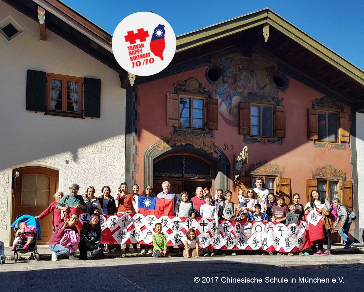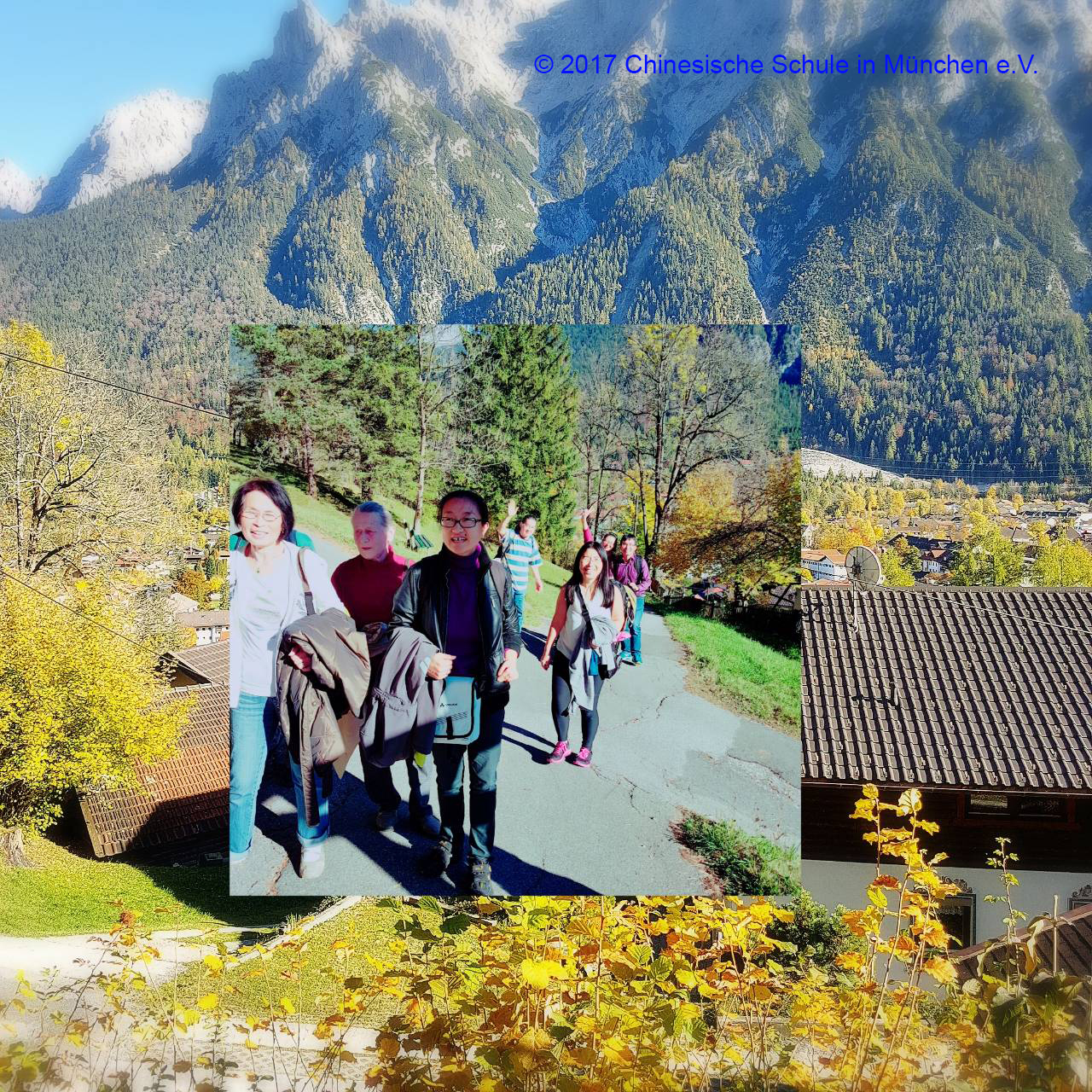 光輝十月普天同慶,慕尼黑中文學校為慶祝中華民國106年雙十國慶,特於10月15日舉辦戶外教學旅遊。是日學校的老師、理事們都全神灌注的注意著10月15日的天氣報導,不需吃素求佛,15號當天,秋高氣爽,風和日麗是個郊遊的好天氣。慕尼黑火車總站遊覽車停車站多了不少亞洲人的臉孔,老老少少帶著興奮的心情步上了在等候的大巴司,通知上寫9點15分出發,嘿!已經9點15分了,還有兩隻黑羊沒進欄,手機連繫來來回回,總算連上了線,等到人趕到上了車出發上路,晚了半個多小時。 嗯。。。。。。