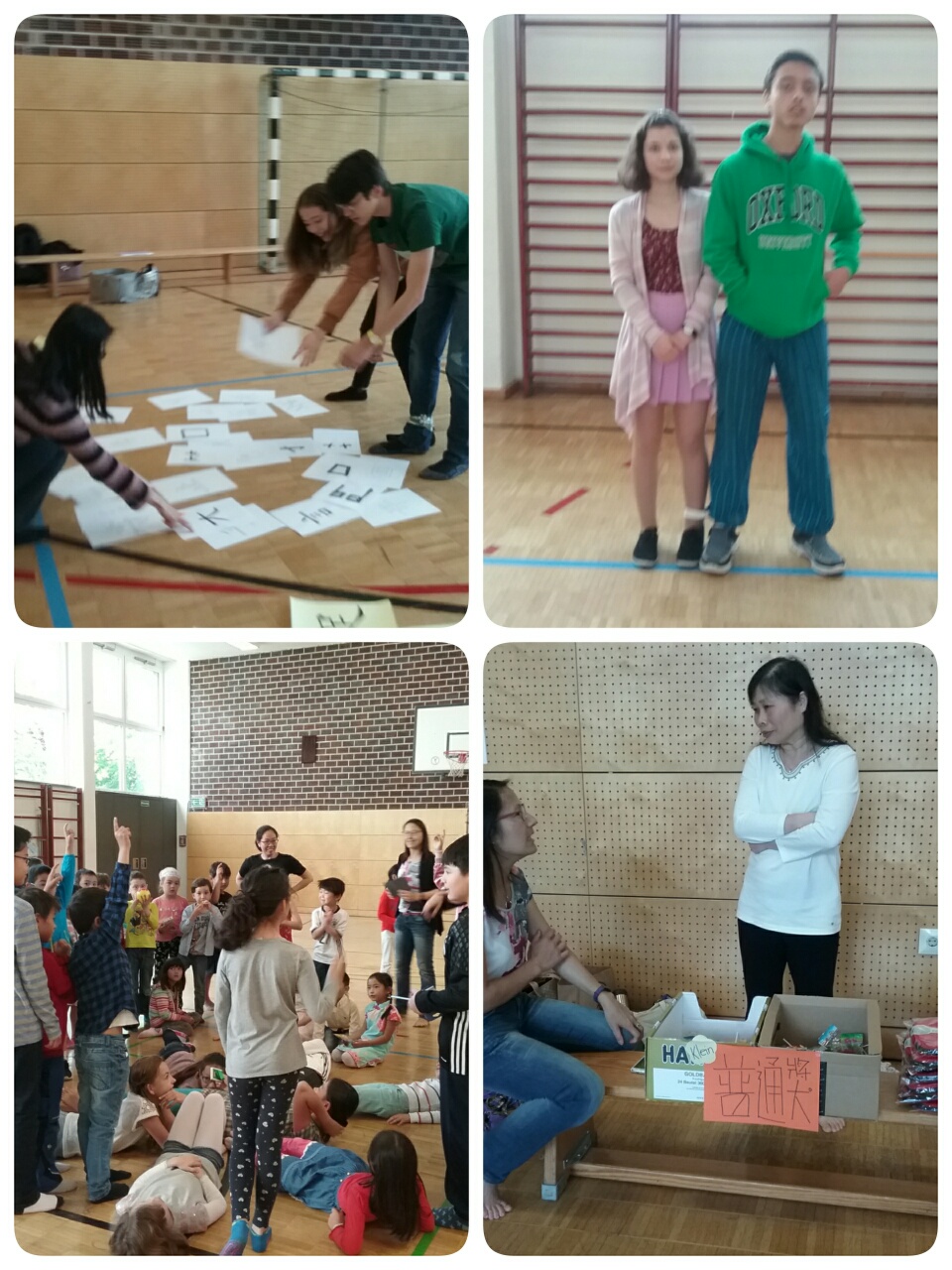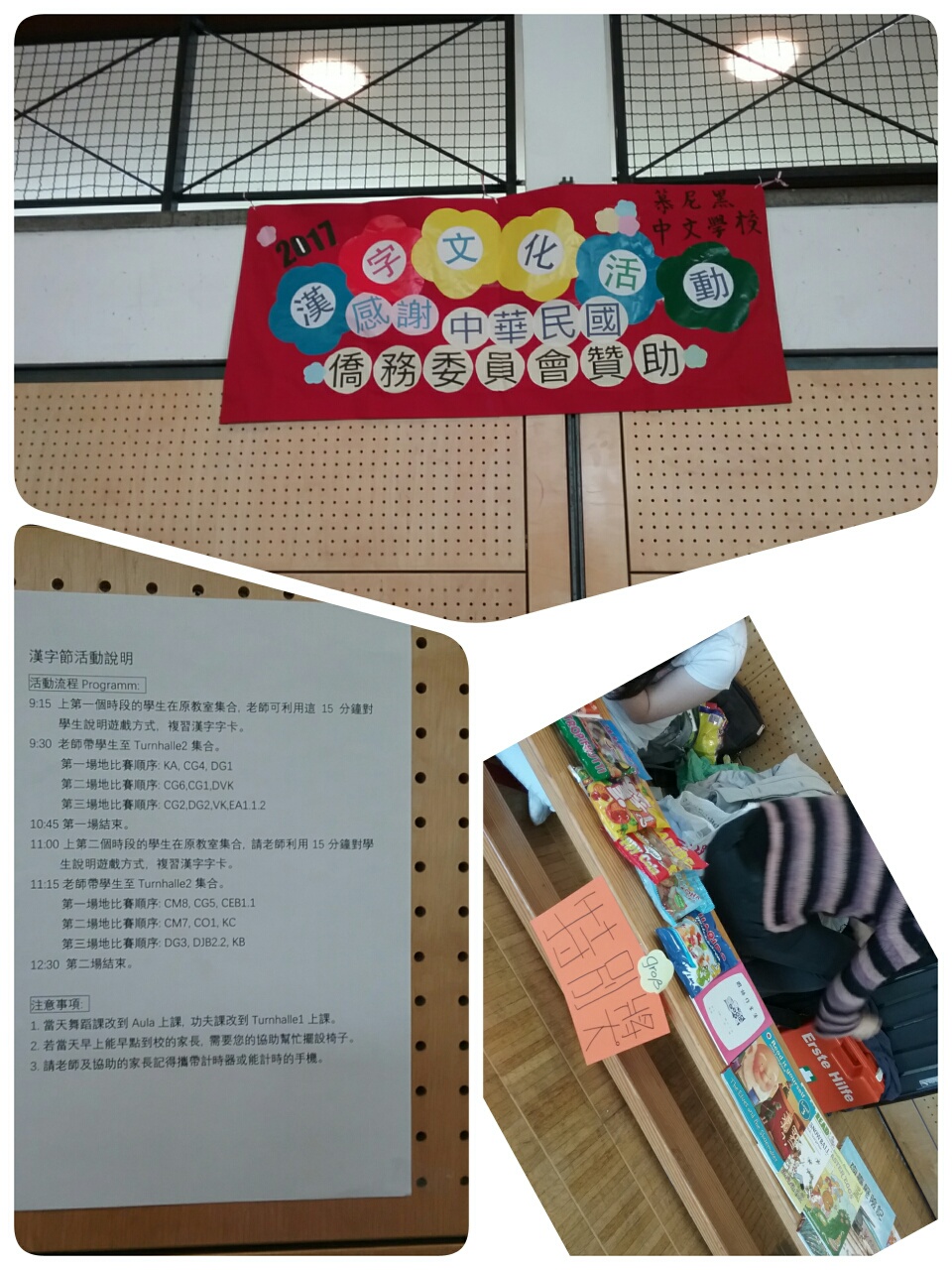 在活動開始前, 各班老師先在教室裡做準備工作,不只跟學生講述遊戲規則, 也順道再複習學過的漢字。到了活動場地, 工作人員早已將場地佈置好, 場地前方更是擺滿琳瑯滿目的獎品, 孩子們看了都好開心, 迫不及待想開始比賽。
